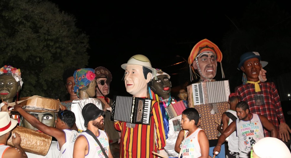 Bonecos gigantes no carnaval de Itaúnas, ES — Foto: Pedro Cypriano |
