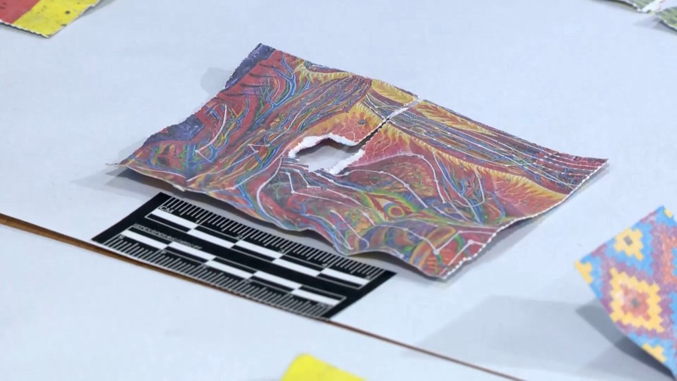 "São selos em papel. Desses selos, são extraídos pequenos selos e a pessoa faz a ingestão sublingual. Eles colocam esse papel em contato com a mucosa, embaixo da língua, vai ter a absorção da substância que vai ser direcionada à corrente sanguínea", relatou o perito.