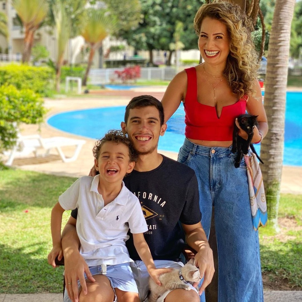 Anne Marjorie com os filhos Davi, de 20 anos, e Dom, de 7 — Foto: Reprodução/Instagram |