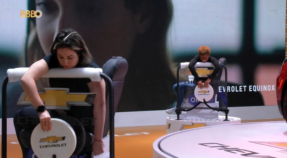 Na disputa, as participantes precisavam se sentar em bancos, cada um em cima de uma plataforma giratória, e segurando um disco. Ao longo da prova, elas poderiam acionar um botão para parar o giro do próprio banco por 30 segundos.