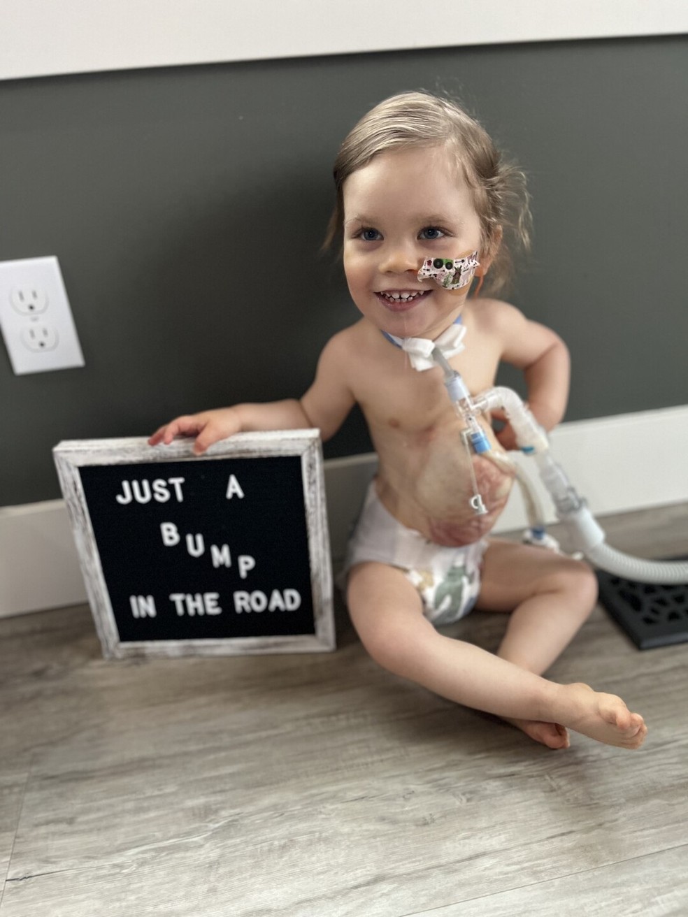 A família construiu um carrinho para colocar o equipamento de respiração do pequeno, para que ele possa se locomover. Ainda assim, ele depende do cuidado de enfermeiras 24 horas por dia, além dos pais. Se ele, acidentalmente, for desconectado dos aparelhos, pode ser uma corrida contra o tempo para tentar salvá-lo e garantir que continue respirando.