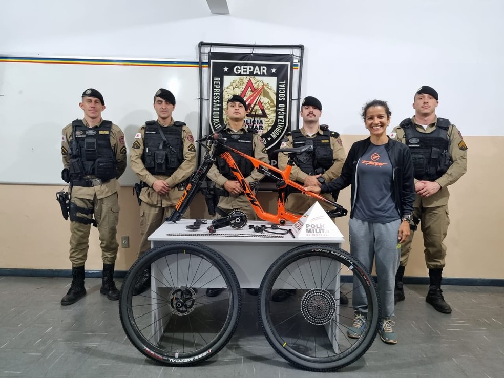 Polícia recupera bicicleta furtada de atleta de mountain bike em BH, que busca vaga olímpica — Foto: Polícia Militar de Minas Gerais |