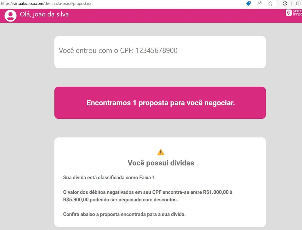 A "Folha de S. Paulo" identificou um link falso patrocinado no Facebook que direciona o internauta para um chatbot de autoatendimento que faz perguntas e responde com promessas enganosas sobre o programa, como descontos de até 99% (o máximo anunciado até aqui é de 96%; detalhes abaixo). Já a Agência Lupa, por sua vez, alertou para a circulação de um link pelo WhatsApp que leva os usuários para um site falso, como se fosse da Serasa.