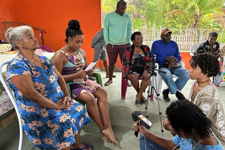 Cinco comunidades do Território Quilombola do Sapê do Norte, localizadas em Conceição da Barra, norte do estado, estão vivenciando um experimento audiovisual com a chegada do Cinema de Griô. A partir dessa iniciativa, os moradores podem captar em imagens e sons os saberes e fazeres guardados no território. Esses registros de personalidades, paisagens, versos, manifestações e histórias, futuramente, serão exibidos em uma sessão de cinema ao ar livre junto com uma mostra de filmes realizados em outras comunidades quilombolas do Espírito Santo.