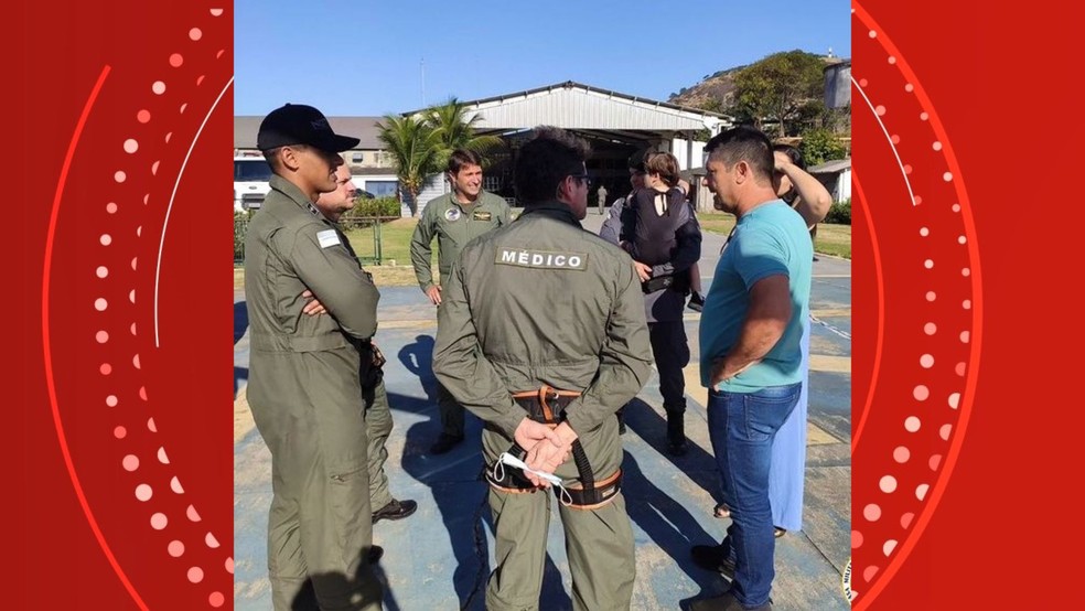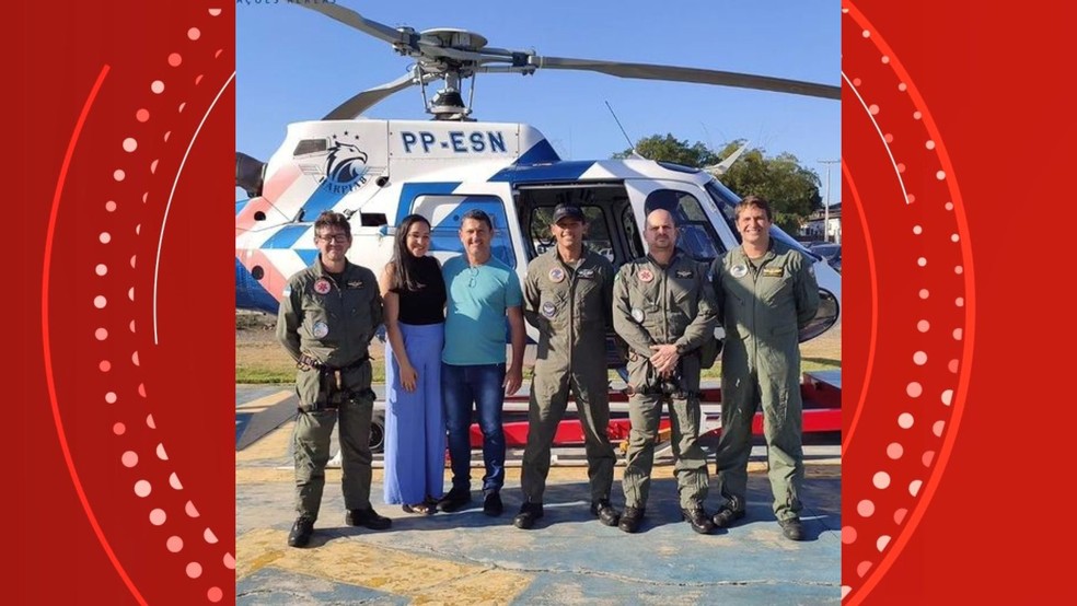 Paciente visita equipe do Notaer que fez sua transferência hospitalar para o hospital em Vitória de helicóptero — Foto: Notaer/Divulgação |