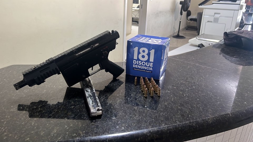 A equipe policial da 16ª DR de Linhares recebeu uma denúncia de que indivíduos estariam na posse de armas de fogo, em dois endereços localizados no bairro Santa Cruz, em Linhares. Em seguida, os policiais se deslocaram aos dois endereços para a averiguação. No primeiro imóvel, foram localizadas entre o fogão e a botija de gás uma submetralhadora caseira e 19 munições calibre 9 milímetros. A proprietária do imóvel informou que a arma seria do investigado e que ele teria deixado o objeto na residência dela.
