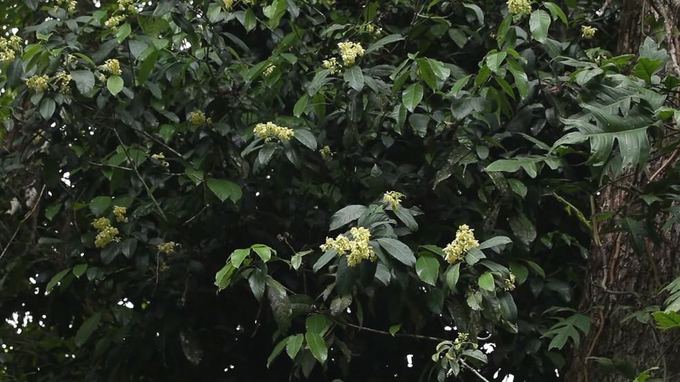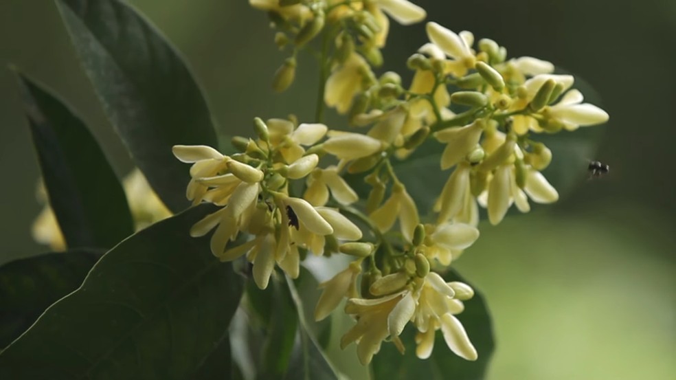 Flor da Andreadoxa flava, com abelhas ao redor — Foto: Reprodução/YouTube/Instituto Floresta Viva IFV |