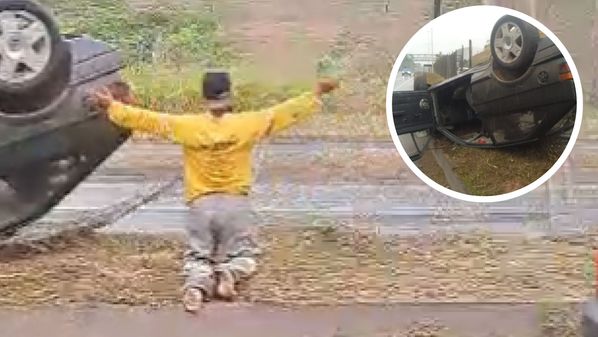 Quem passou pela rodovia federal, na altura de Nova Rosa da Penha, em Cariacica, registrou em imagens o carro capotado. Em um dos vídeos, Zenilton, que está vestido de amarelo e com um boné, aparece ajoelhado e com os braços abertos, ao lado do carro.