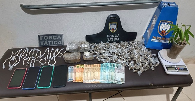 De acordo com informações da Comunicação do 2º Batalhão de Polícia Militar, na ação foram apreendidos dinheiro, aparelhos celulares, drogas e uma balança de precisão.