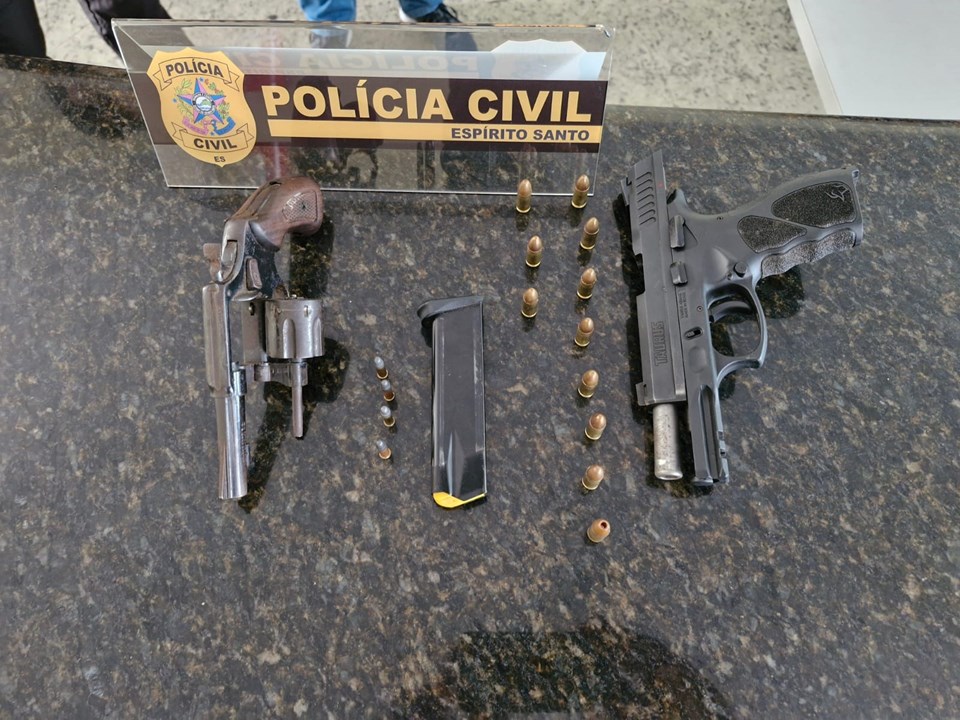 Logo em seguida, as equipes se dirigiram para o bairro Boa Vista, em Vila Valério, onde os policiais cumpriram mandado de busca e apreensão. Durante a diligência, encontraram e apreenderam duas armas de fogo e munições: uma pistola 9mm e um revólver calibre 22. Um homem de 28 anos, flagrado com essas armas, foi preso em flagrante por posse ilegal de arma de fogo e conduzido para a 16ª Delegacia Regional de Linhares.