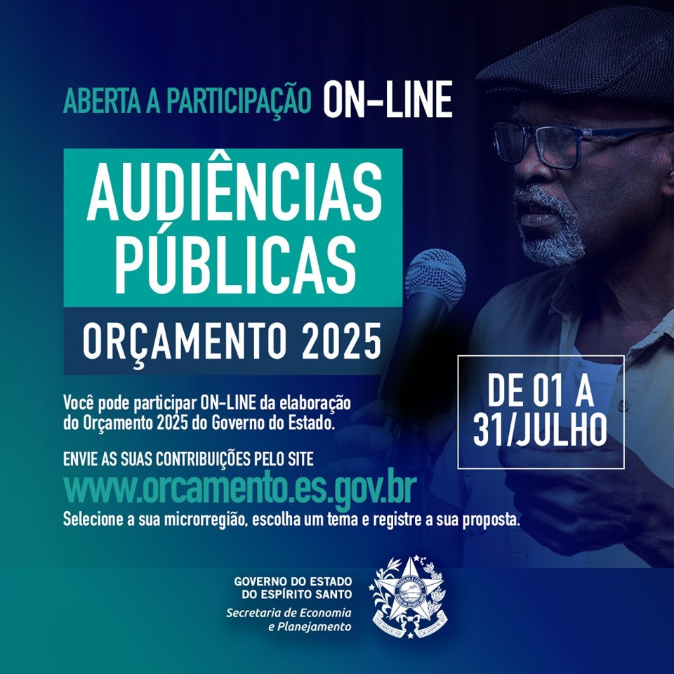 A população capixaba já pode contribuir com a elaboração do Orçamento 2025 do Governo do Estado. Foi aberta, nesta segunda-feira (1º), a participação on-line, que deve ser realizada pelo site www.orcamento.es.gov.br até o dia 31 de julho.