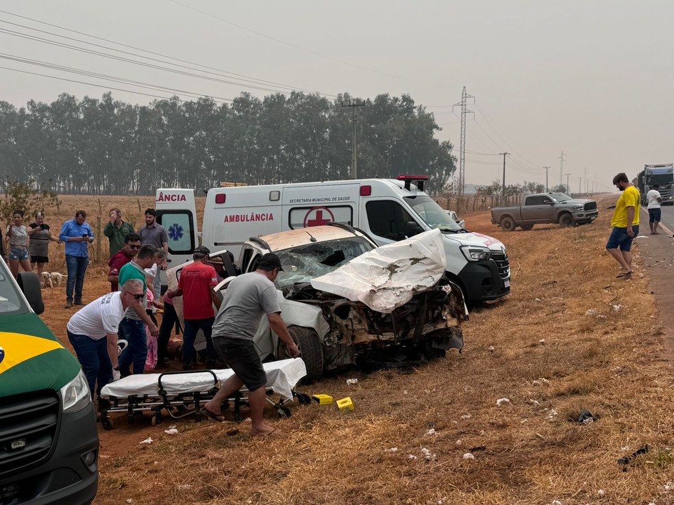 De acordo com a enfermeira e coordenadora de equipe do Serviço de Atendimento Móvel de Urgência (Samu), Grasiele Matuchake Rezende, o acidente ocorreu nesta tarde, na BR-364. Na ocasião, a caminhonete trafegava de Brasnorte, sentido Campo Novo do Parecis, quando um pneu estourou e fez com que o veículo invadisse a pista contrária, batendo contra a carreta.