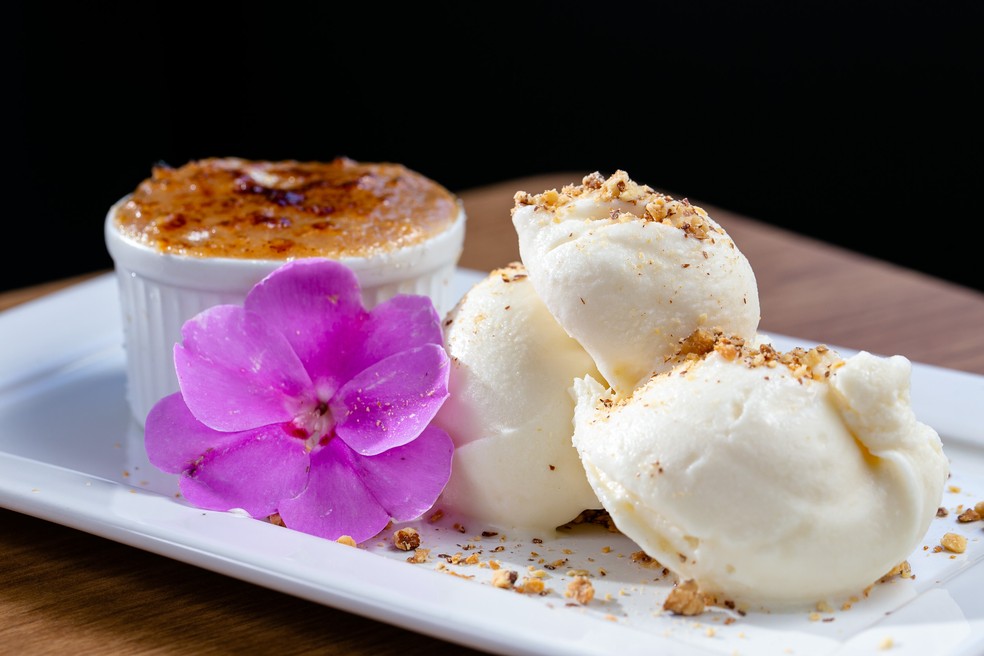 Prato: Cocada brûlée com gelato de macadâmias crocante