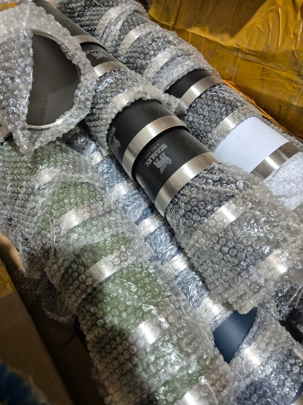 | Polícia apreende 45 mil copos térmicos, produtos eletrônicos e brinquedos falsificados no Espírito Santo. — Foto: PCES |