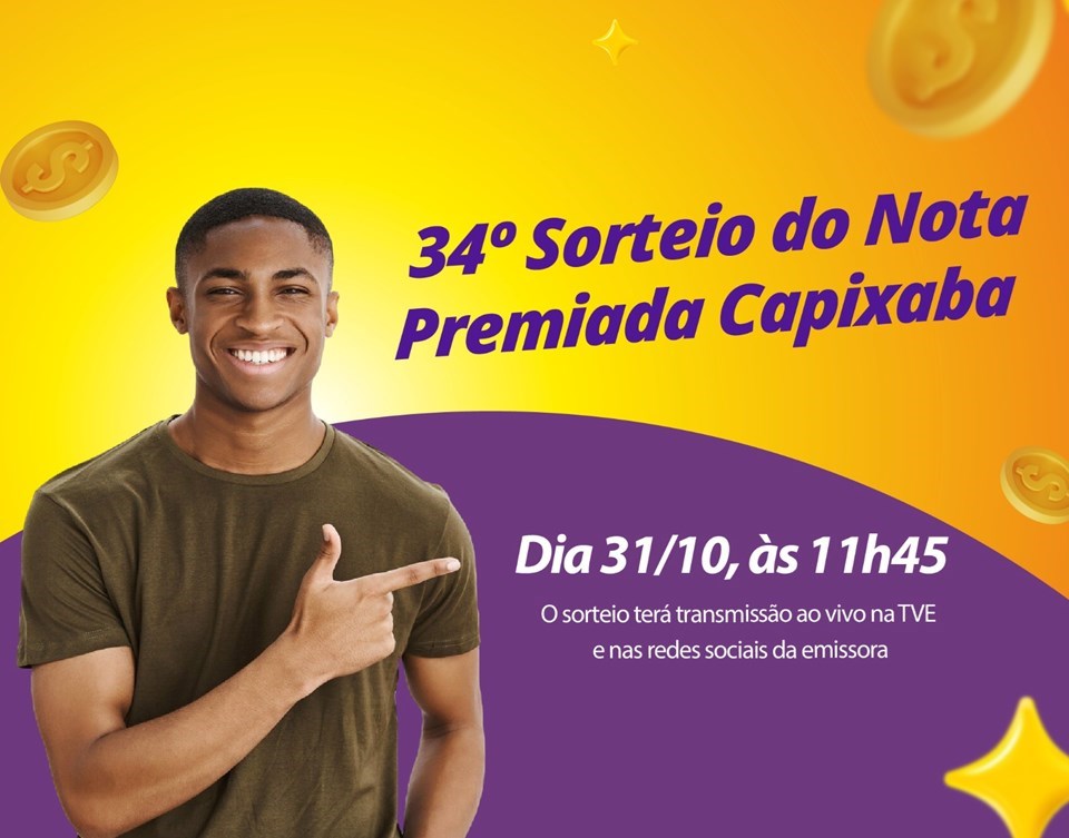 O sorteio de outubro do Nota Premiada Capixaba será realizado na quinta-feira (31), às 11h45, com transmissão ao vivo na TVE, na Rádio Espírito Santo e também nas redes sociais da emissora. Os 12 ganhadores do 34º sorteio do programa levarão para casa R$ 97,5 mil em prêmios, quatro por região: Metropolitana, norte e sul.