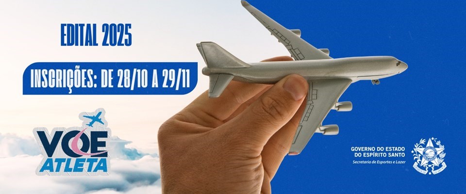 O Governo do Estado, por meio da Secretaria de Esportes e Lazer (Sesport), publicou, nesta sexta-feira (25), no Diário Oficial do Estado, o edital do programa Voe Atleta 2025. Com um investimento previsto de R$ 2,8 milhões, o programa vai beneficiar esportistas capixabas de alto rendimento de diversas modalidades, oferecendo cerca de 750 passagens aéreas para competições nacionais e internacionais.
