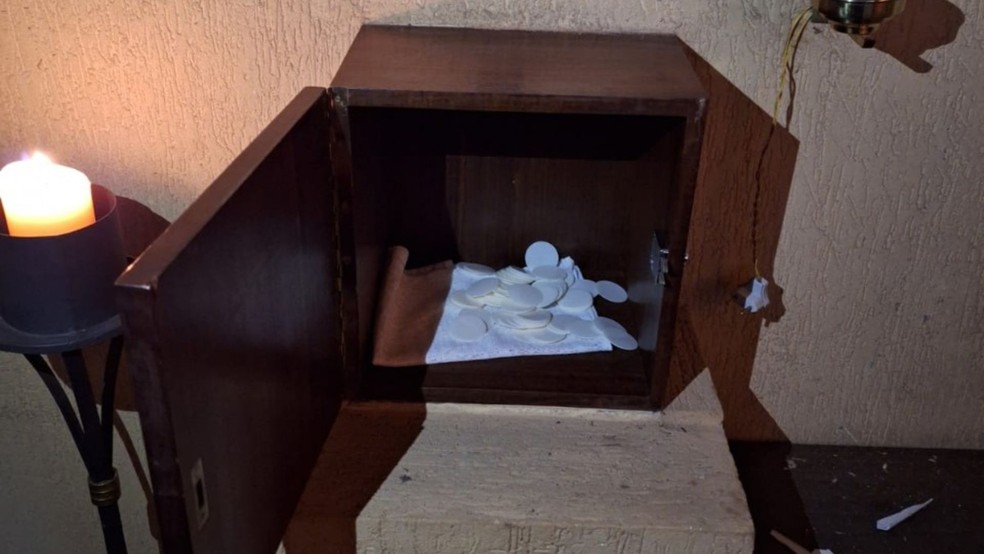 Além das hóstias, suspeitos levaram equipamentos de som, fiação elétrica, vestes e objetos utilizados durante as celebrações religiosas.