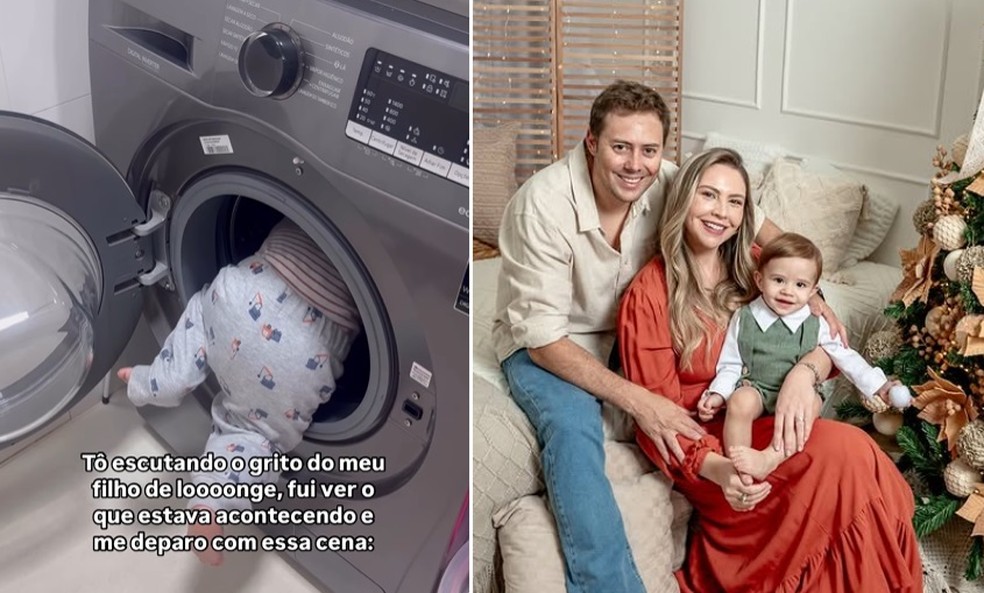 Flávia flagrou Bernardo dentro da máquina de lavar — Foto: Reprodução/ InstagramEm entrevista, a mãe explicou que o filho tem um encanto pela máquina de lavar desde que começou a engatinhar. “Ele acha muito interessante ver as roupas rodando ali dentro”, conta. A família tem o hábito de desligar a lavadora da tomada sempre ao término dos ciclos de lavagem. Ao perceberem a atração do pequeno, ficaram ainda mais atentos a isso.