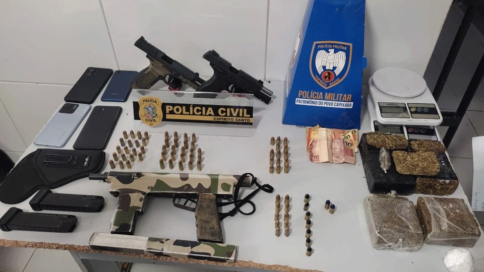 Durante a investigação, foram apreendidos três adolescentes, dois de 16 anos e um de 17 anos, além de um indivíduo, de 19 anos, com um mandado de prisão em aberto por tráfico de entorpecentes. Com o grupo, foram apreendidas duas pistolas, uma submetralhadora calibre 380 e uma quantidade considerável de drogas.