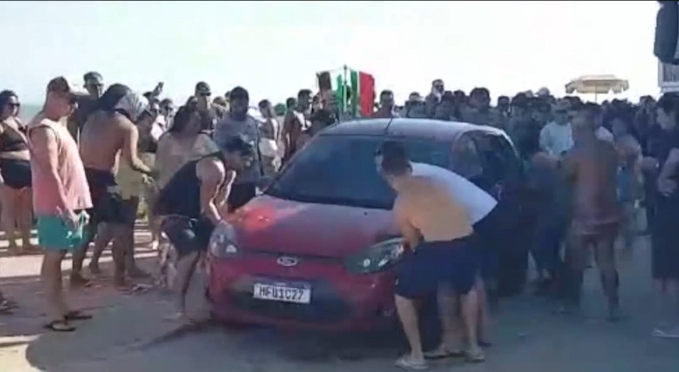 Foliões que estavam curtindo um show em Itapemirim, no Sul do Espírito Santo, arrastaram dois veículos que estavam estacionados na orla de Itaoca para possibilitar a passagem do trio elétrico na tarde do domingo (19). A cena foi registrada por pessoas que estavam no local (assista abaixo) e viralizou nas redes sociais.