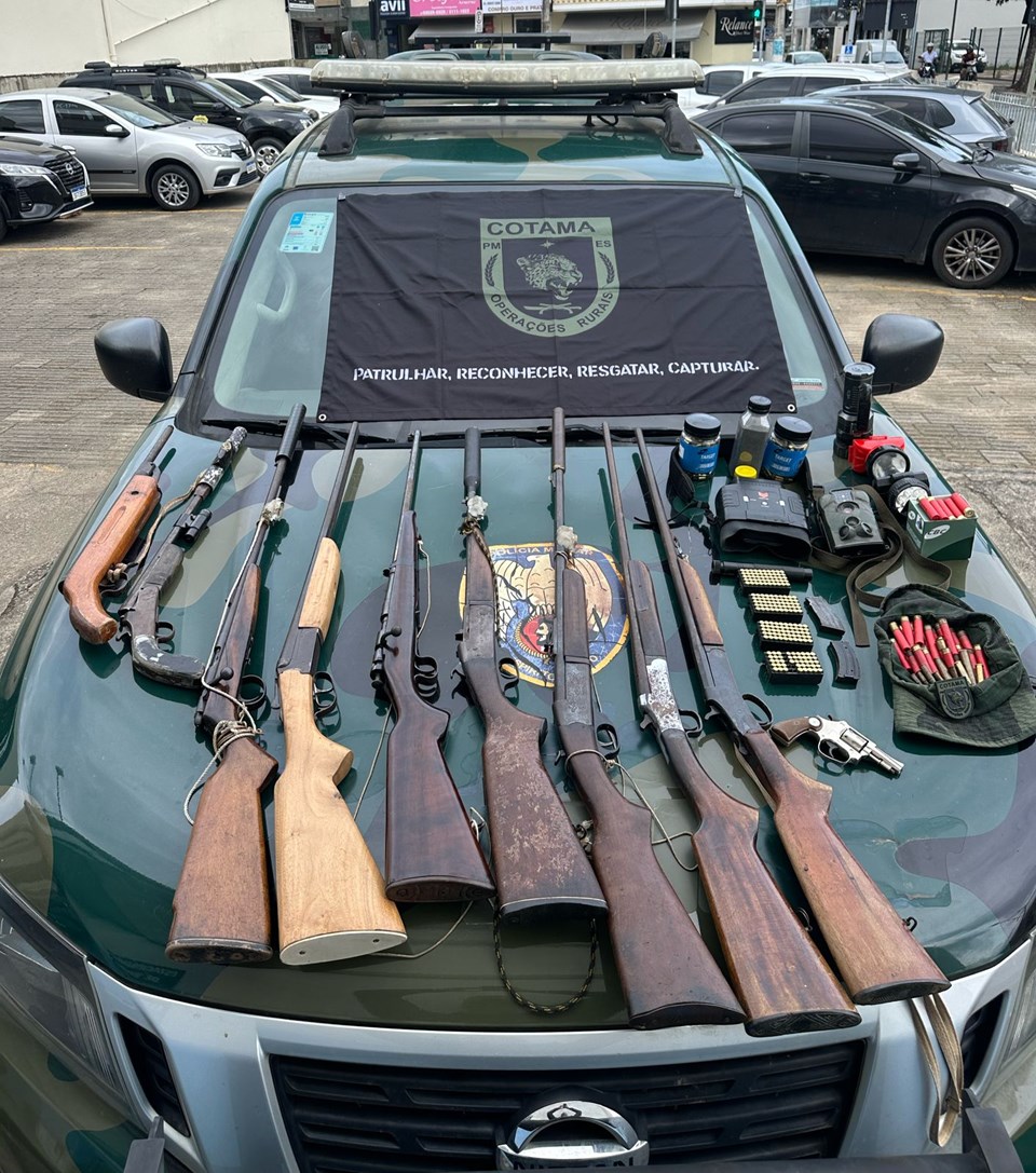 Em Fundão, a equipe do Comando de Operações Táticas em Mata Atlântica (COTAMA) apreendeu 10 armas de fogo, 759 munições e equipamentos como óculos de visão noturna. Um suspeito foi encaminhado à Delegacia de Aracruz.