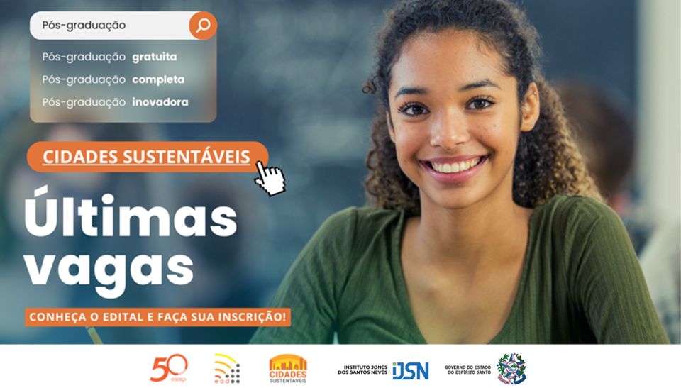 O edital completo pode ser acessado em https://esesp.es.gov.br/posgraduacaocidadessustentaveis. Ainda dá tempo de transformar sua atuação no serviço público. Aproveite a prorrogação e inscreva-se!