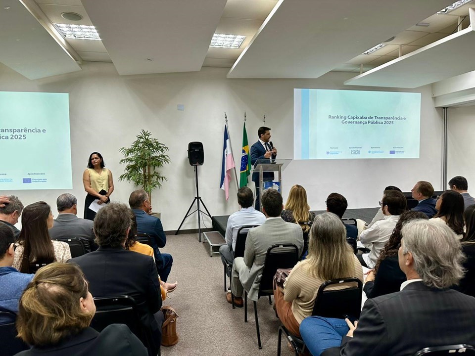 A Secretaria de Controle e Transparência (Secont) participou, nesta terça-feira (07), da cerimônia de lançamento do Ranking Capixaba de Transparência e Governança Pública 2025. O evento aconteceu no auditório do Conselho Regional de Contabilidade do Espírito Santo (CRC-ES) e reuniu autoridades e representantes de vários municípios do Estado, em Bento Ferreira, em Vitória.