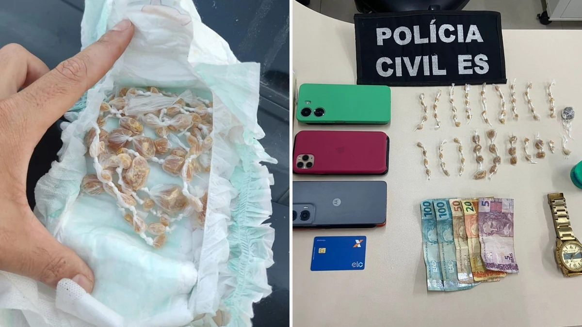Uma mulher de 40 anos, identificada como Daiana Ribeiro, foi presa em flagrante ao ser encontrada com drogas escondidas dentro de uma fralda descartável de bebê. O caso aconteceu na quinta-feira (16), em Itapemirim, no Sul do Espírito Santo, durante uma ação da Delegacia Regional do município.