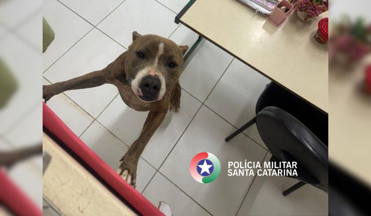 Animal foi contido por funcionários do colégio e encaminhado para a DibeaFoto: Divulgação/PMSC/ND MaisDecreto restringe circulação de pitbulls em Santa Catarina