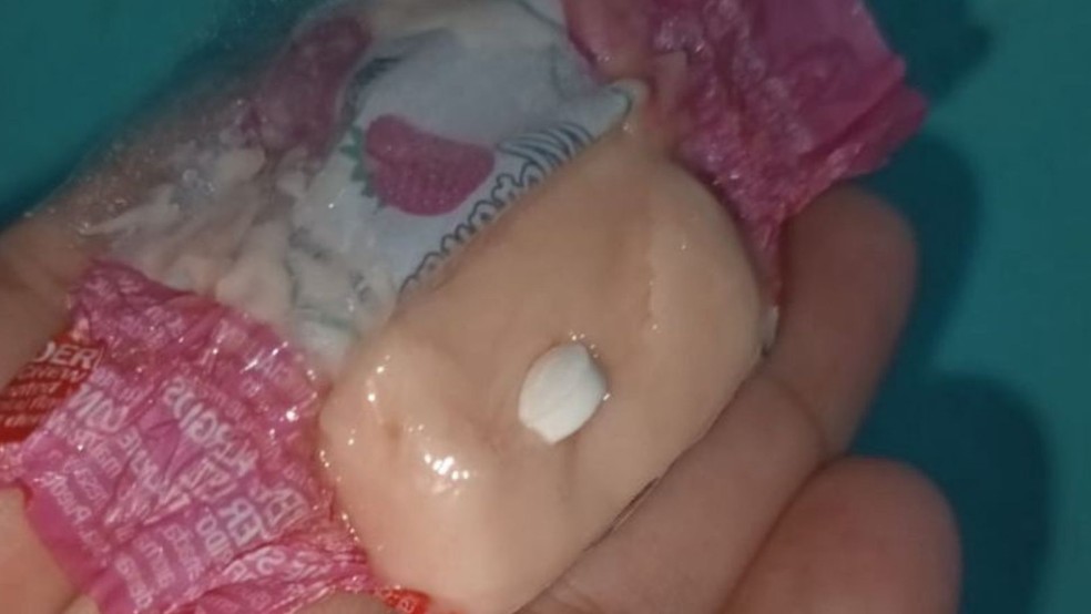 Moradores relatam ter encontrado comprimido em balas distribuídas a crianças em praça de MG — Foto: Redes sociais/reprodução