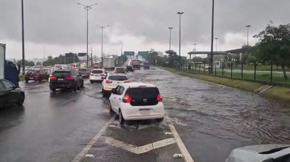 Água na pista causa retenção na ponte que da acesso à saída de Florianópolis — Foto: PMF/Divulgação