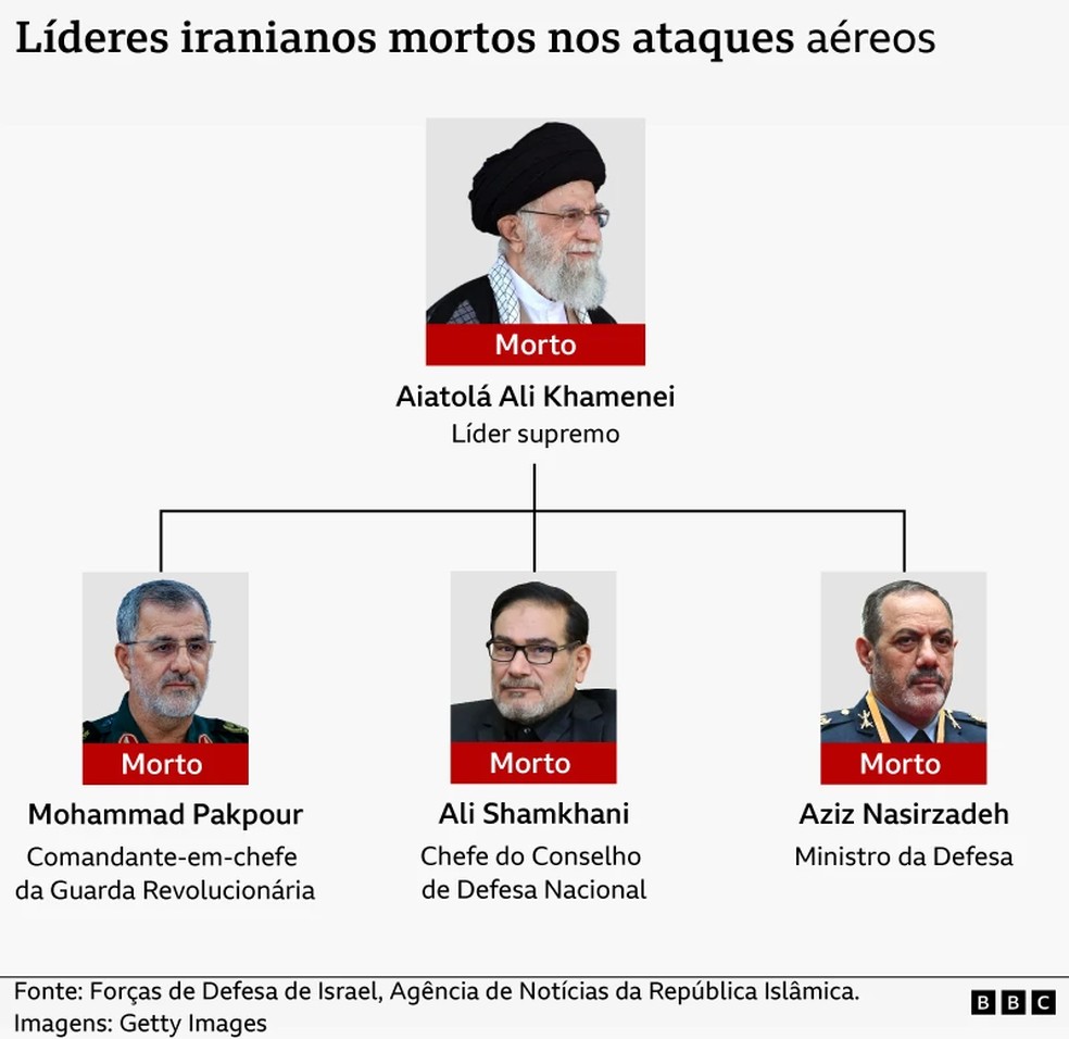 Líderes iranianos mortos nos ataques — Foto: BBC |