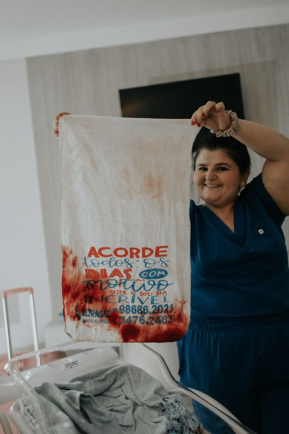 "Na hora que veio a contração do período expulsivo, bastou uma força e a cabeça saiu seguida do corpo. Quando percebi, estava com minha filha saudável e linda nos meus braços. Na hora em que ela nasceu, precisávamos de um pano para enrolá-la e só consegui pegar um pano de prato que estava enrolado na compressa nas minhas costas", lembra.