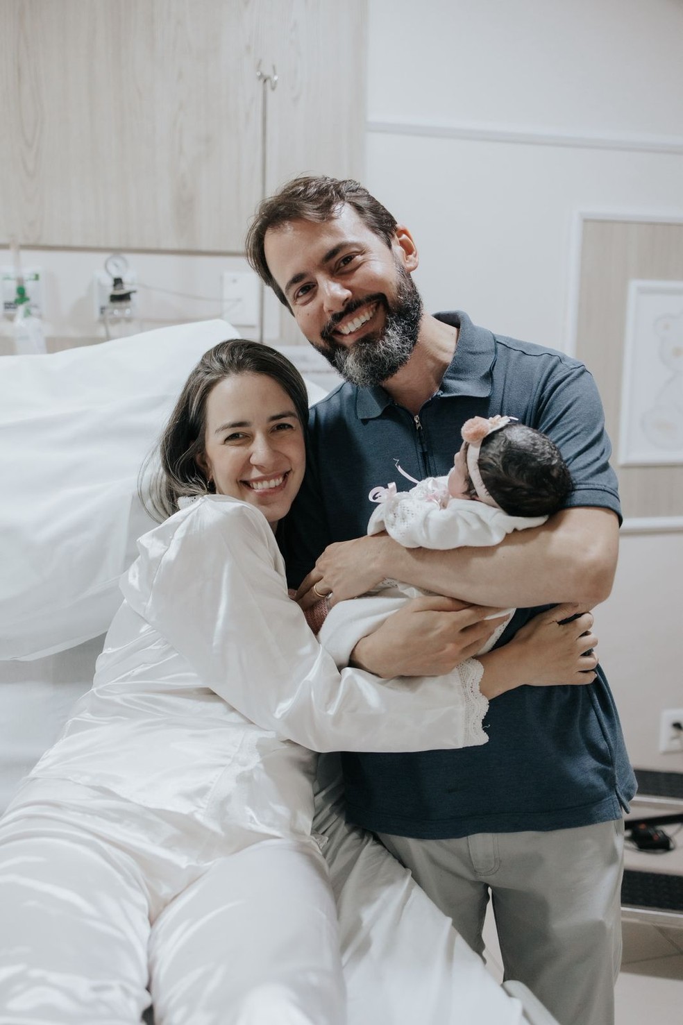 A gestação foi cheia de desafios, não só pelo enjoo e indisposição, mas porque seu marido, o dentista Denis Bezerra de Araújo, 43, havia sofrido um AVC quando ela estava com 18 semanas. "Foi um tempo de muita provação, mas nossos laços se fortaleceram imensamente nesse período", diz.